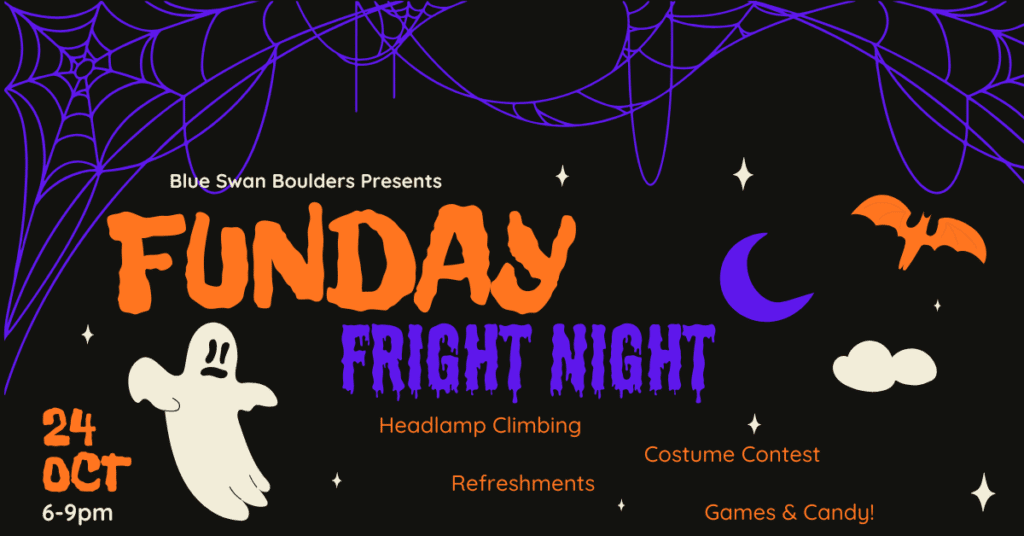 This event is the perfect way to celebrate Halloween with friends and family while getting your sends in. Enjoy climbing in the dark, games, a costume contest and refreshments and of course, candy! There will be something for everyone!