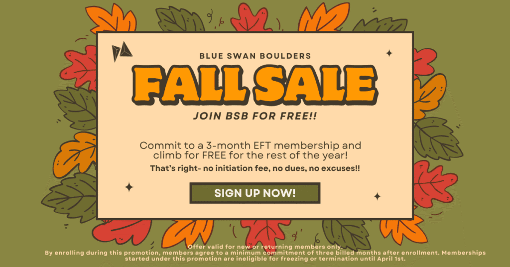 Become a Blue Swan Boulders member today and enjoy unlimited bouldering and fitness any time.