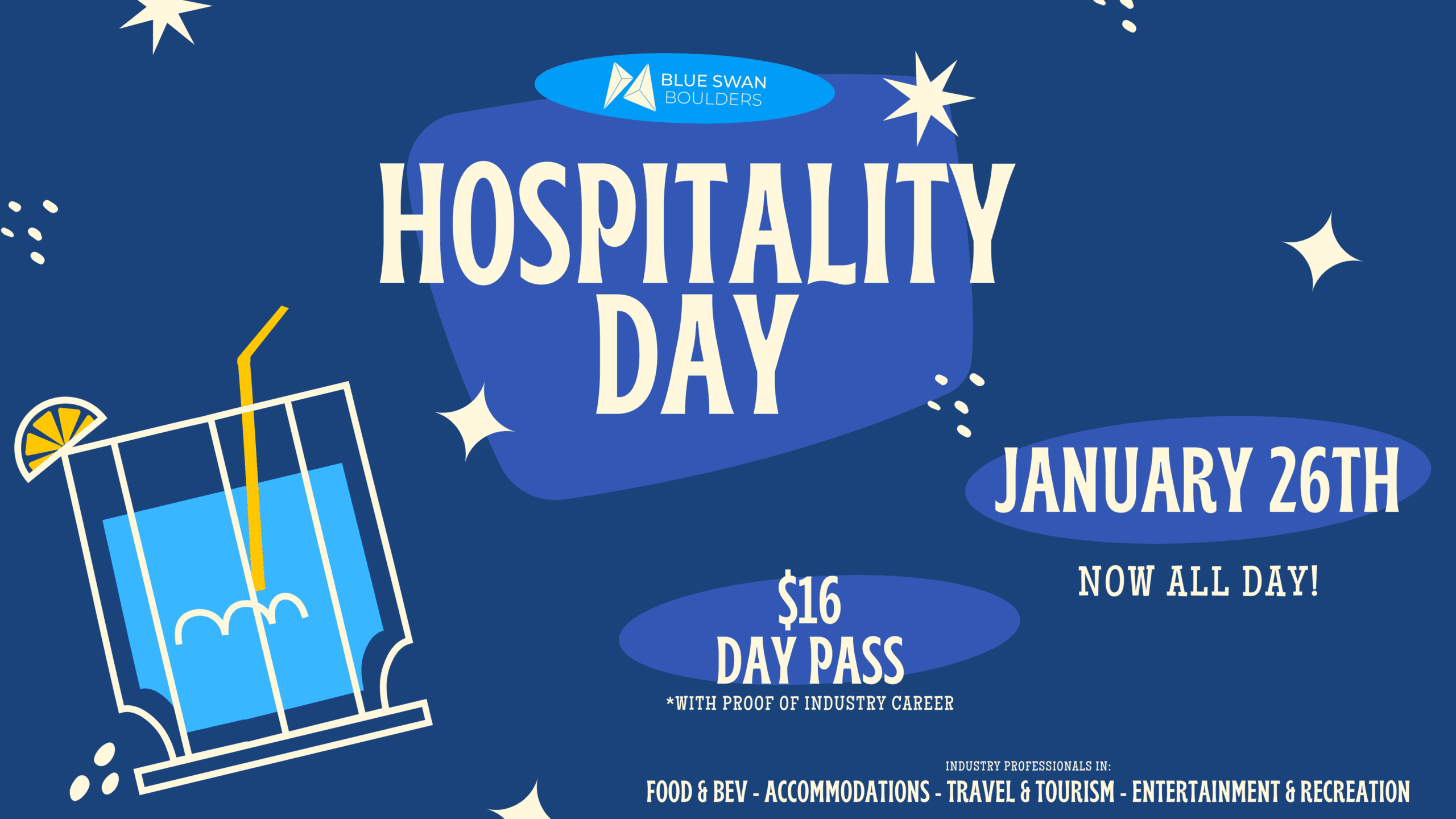 Recharge your physical and mental wellbeing with your service friends at Blue Swan Boulders, where hospitality workers climb higher.