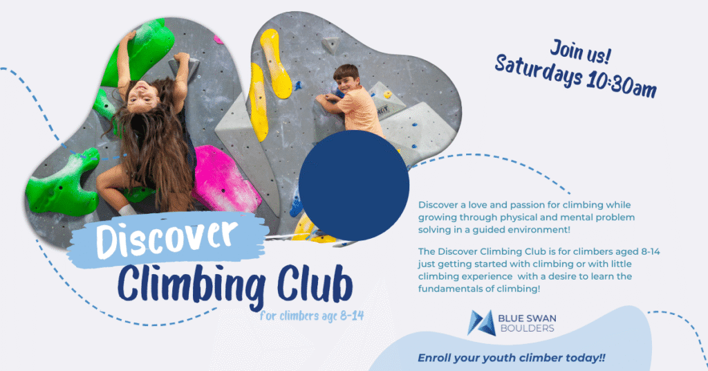 The Discover Climbing Club is all about discovering a love and passion for climbing while growing through physical and mental problem solving in a guided environment.